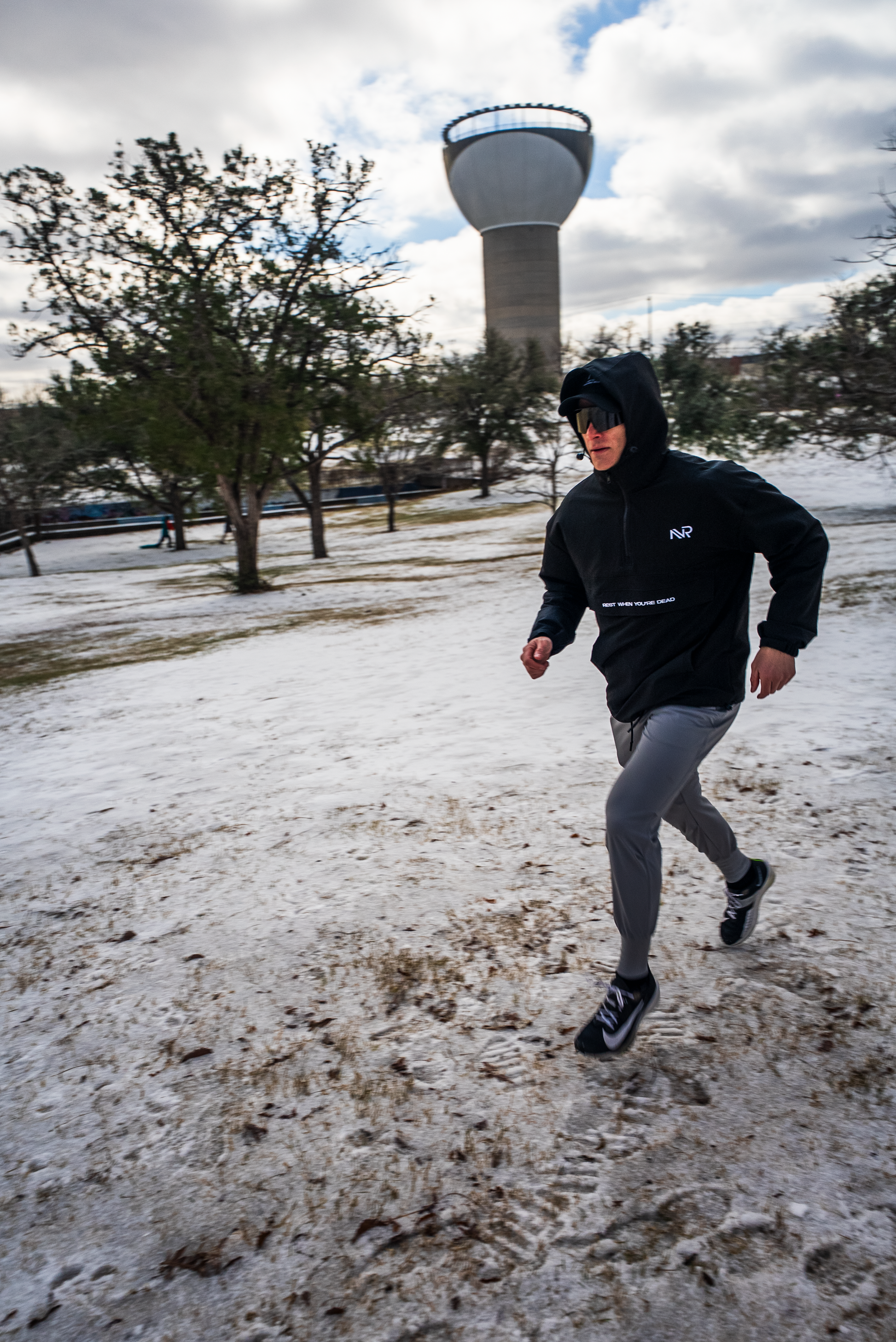 The Frost Quarter Zip Pullover is built for training and movement in harsh, cold conditions. Constructed from a thick, insulating performance fabric with premium stretch, it delivers warmth without restricting mobility. A wind- and water-resistant exterior helps block the elements, while the quarter-zip design allows for fast temperature control during training and everyday wear. Designed for athletes who don’t stop training when winter hits.